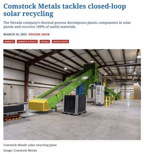 Air Quality Permit For Its First-Of-A-Kind, Industrial Scale Solar Panel Processing Facility VIRGINIA CITY, NEVADA, November 24, 2025 -- Comstock Inc. (NYSE: LODE) (“Comstock” and the “Company”) and ...